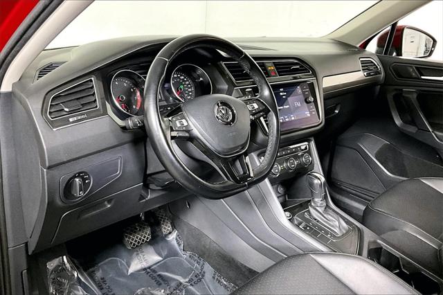 Clean CARFAX. Cardinal Red Metallic 2019 Volkswagen Tiguan 2.0T SE FWD 8-Speed Automatic with Tiptronic 2.0L TSI DOHC **CLEAN VEHICLE HISTORY REPORT** Tiguan 2.0T SE 2.0L TSI DOHC Cardinal Red Metallic Titan Black w/Perforated V-Tex Leatherette Seating Surfaces 17"" 10-Spoke Alloy Wheels 4-Wheel Disc Brakes 6 Speakers Air Conditioning AM/FM radio: SiriusXM Bumpers: body-color Dual Zone A/C Heated door mirrors Power driver seat Power steering Power windows.Were confident we have...