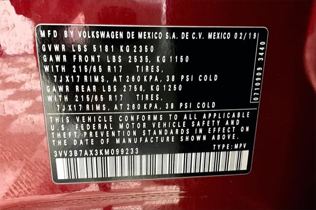 Clean CARFAX. Cardinal Red Metallic 2019 Volkswagen Tiguan 2.0T SE FWD 8-Speed Automatic with Tiptronic 2.0L TSI DOHC **CLEAN VEHICLE HISTORY REPORT** Tiguan 2.0T SE 2.0L TSI DOHC Cardinal Red Metallic Titan Black w/Perforated V-Tex Leatherette Seating Surfaces 17"" 10-Spoke Alloy Wheels 4-Wheel Disc Brakes 6 Speakers Air Conditioning AM/FM radio: SiriusXM Bumpers: body-color Dual Zone A/C Heated door mirrors Power driver seat Power steering Power windows.Were confident we have the right price for you the right quality for you the right level of trust for you and the proper respect for how you want to purchase an automobile. We pride ourselves on the best and fastest way to get all the information you need to make well-informed decisions all in 30 minutes or less. Express Buying is Fast Simple Friendly and Fair. It all adds up to the right car buying experience for you. Youll simply love the way we do business. Need specific reasons to start here? Have a look at the list below: Upfront prices. Zero hassles. Homer Skelton Ford makes it easy to find the right car for you at a price you can trust. Your car's no-haggle price is the same online as it is on the lot and we will validate our pricing 100% of the time. We also offer very flexible financing options. We stand behind our cars. All of our used cars are Quality Certified and come with a free vehicle history and safety recall report 72-Hour Money-Back Guarantee and 30-Day Limited Warranty. Certain vehicles may have unrepaired safety recalls. We'll buy your car even if you don't buy ours. Our fast free appraisal process along with our partnership with Kelly Blue Books Trade-In Buying Center ensures the most money for your Trade-In. KBB will write you a check for your automobile or we will! Either cash offer is good for seven days. And we'll buy any car no matter its age or condition. 22/29 City/Highway MPG