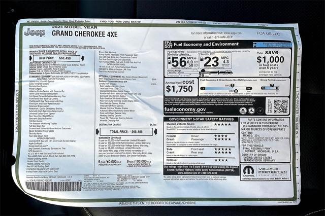 Baltic Gray Metallic Clearcoat 2024 Jeep Grand Cherokee Base 4xe 4WD 8-Speed Automatic 2.0L I4 DOHC 2.0L I4 DOHC 4WD.Recent Arrival! Price includes all rebates and incentives. Not all customers will qualify for all rebates.$500 - 2024 National Holiday Bonus Cash. Exp. 01/02/2025 $7500 - 2024 National Retail Consumer Cash . Exp. 01/02/2025